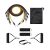 My wife and I both have these sets. Includes a door jam piece so you can attach the bands to the inside of your house door, hotel room door. Includes an exercise sheet. Bands are well made and should last for a long time. You can use several bands simultaneously. Recomended!